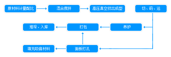 | 2、生產(chǎn)工藝簡述 (1)、計(jì)量配比、攪拌:輕質(zhì)高強(qiáng)纖維混凝土聲屏障板主要使用水泥、石粉、纖維、外加劑及吸聲材料。原料經(jīng)主控計(jì)算機(jī)設(shè)定配合比進(jìn)行精確計(jì)量后,依次序送入專用混合攪拌機(jī)進(jìn)行加水均勻拌合。 | ![]() |