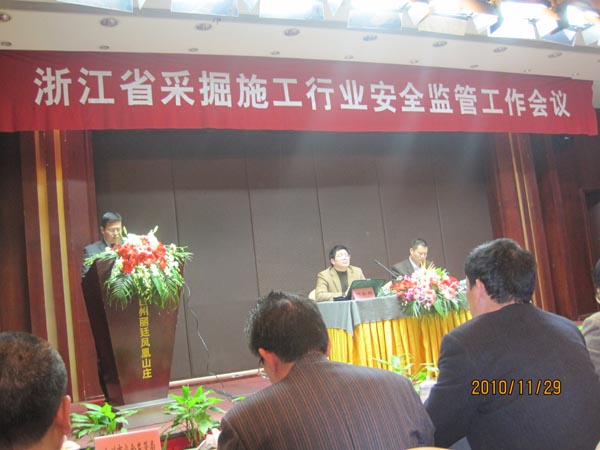 為深入貫徹《國務院安委會辦公室關于貫徹落實〈國務院關于進一步加強企業安全生產工作的通知〉精神進一步加強非煤礦山安全生產工作的實施意見》(安委會[2010]17號)和《中共浙江省委浙江省人民政府關于進一步加強安全生產工作的意見》(浙委[2009]88號)文件精神,落實好《浙江省安監局關于做好采掘施工企業安全標準化工作的通知》(浙安監管礦[2010]198號)要求,浙江省安監局于2010年11月29日至30日在臺州組織召開了全省采掘施工企業安全監管工作會議,參加會議人員有各市安監局礦山處負責人,各縣安監局分管局長和礦山科負責人,有關礦山中介機構負責人,采掘施工試點企業負責人和安全機構負責人,礦山工程施工總承包資質或土石方工程專業承包資質二級以上采掘施工企業負責人和安全機構負責人等140余名,我公司董事長朱為然和分管安全副經理張書巧參加了會議。
