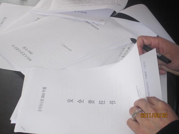 2011年3月2日,我公司在公司四樓會議室舉行2011年度各級安全生產(chǎn)目標(biāo)管理責(zé)任書簽訂儀式。