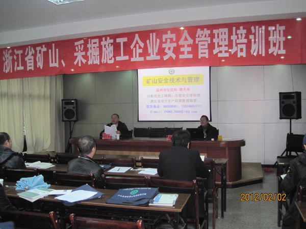 為加強礦山采掘施工企業的安全管理,浙江省安全生產教育培訓中心于2012年2月2日~2月5日在蒼南縣安監局二樓會議室舉辦浙江省礦山采掘施工企業主要負責人及安全管理人員安全管理培訓班,我公司董事長、總經理、各分管副總及安全管理人員等10位同志積極參加學習培訓。