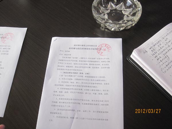 2012年3月27日,我公司在四樓會議室舉行2012年各級安全生產目標管理責任書簽訂儀式。