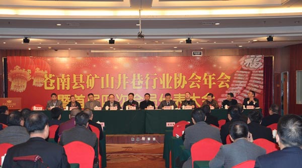 金龍騰飛送冬去,銀蛇曼舞迎春來。2013年2月14日(農歷大年初五)上午,蒼南萬豪大酒店萬豪廳里高朋滿座、精英薈萃,來自全國各地的知名礦山井巷行業企業家們歡聚一堂,蒼南縣礦山井巷行業協會年會暨首屆四次會員代表大會在此隆重舉行。縣委副書記、代縣長黃榮定,縣委常委、副縣長雷仁,鎮委書記黃榮鋼,鎮長吳招鵬及礦山井巷行業協會會員等百余人參加會議,總結蒼南礦山井巷行業在過去一年里取得的輝煌成就,共商行業發展大計。